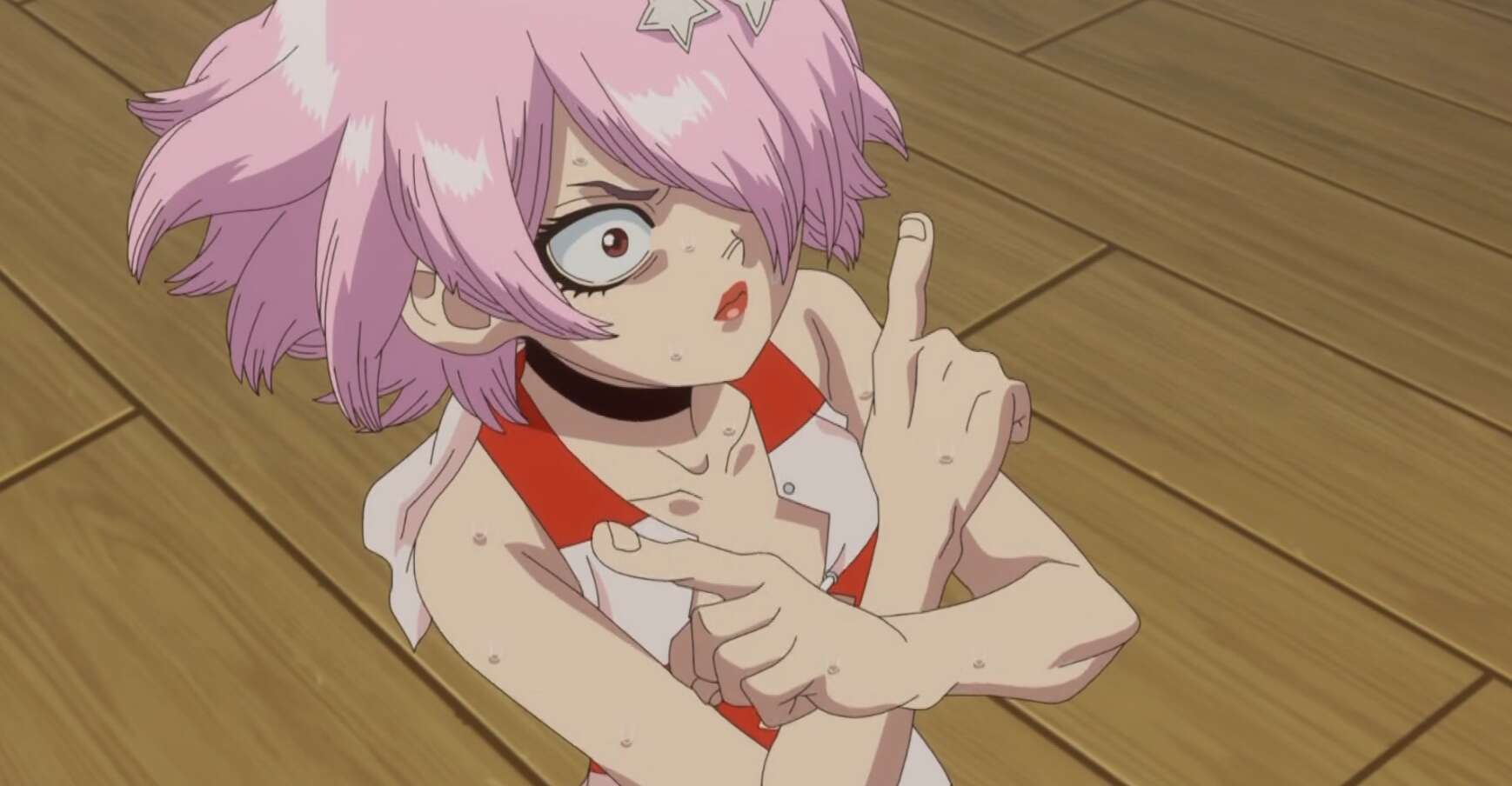 龍水はスナイパーがいる事を船員全員に伝えますが、船上はパニックになり船員は逃げ惑います。スタンリーはゼノの情報から該当者を3名に絞り込みますが、パニックになったルーナはついスタンリーの方に視線を送ってしまいます。