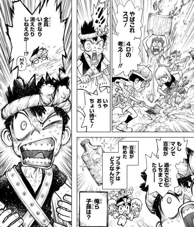 そこに千空が現れ、わからねえことにルールを探し続ける、それが科学だ、と言います。