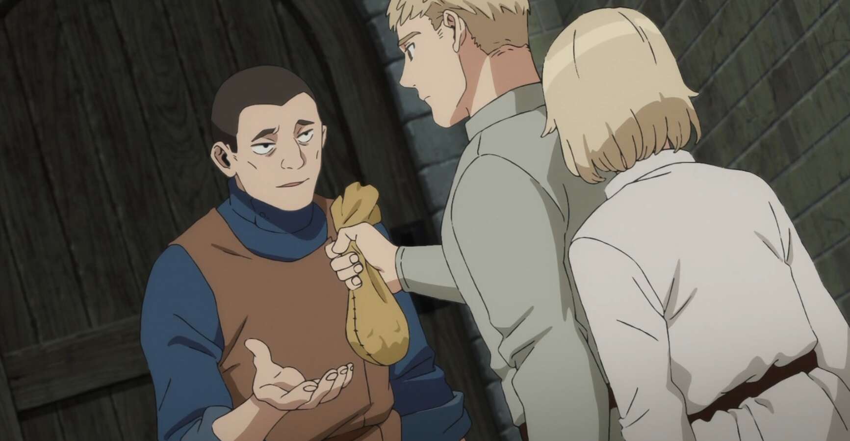 魔法を詠唱していたリンシャを止めたカブルーは、この霧を発生させた術者を突き止めて槍で刺そうとします。すると死体回収屋は正体を現し、霧や幻覚の魔法も解きます。死体回収屋はカブルー一行とライオス一行を殺し合わせ、その死体で一儲けしようと企んでいました。