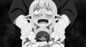 そして、シェイプシフターという幻術を操る魔物に遭遇、偽物の仲間を作られてしまいライオス達は混乱します。ある程度は偽物と判定できる幻もいますが、最後は自分こそは本物だと全員が言い出して、同一人物同士で争いを始めてしまいます。ライオスは、誰を選んでも結局こうなると予想していて、自分達が疲弊するまでシェイプシフターは付近で潜んでいると予想し、犬のモノマネでシェイプシフターを引きずり出します。犬のモノマネに熱中するあまり、ライオスは武器を抜かず素手でシェイプシフターを襲おうとしますが、最後はマルシルが魔法で止めを刺します。一件落着とか思いましたが、突如シュローの所のアセビという忍者が現れ、マルシルが捕まってしまいます。確かアセビは前回、ファリンとの戦闘中にいつの間にか姿を消したはずですが、何か目的があってマルシルを捕まえたようです。平和的な話し合いがしたようですが、何の目的でマルシルを捕まえたのでしょうか?