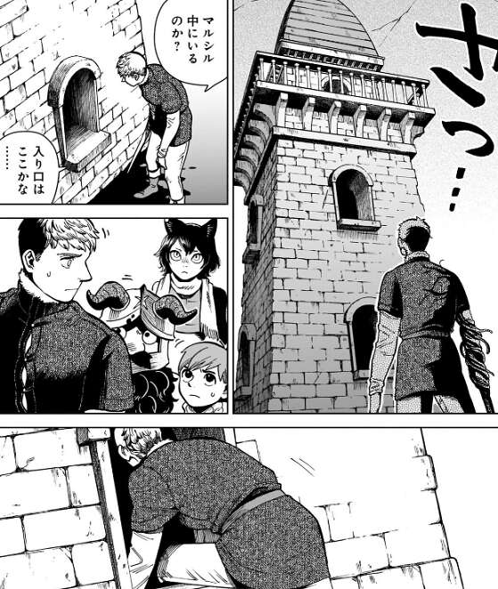 ライオスはマルシルが中にいると思われる建物に入っていきますが、1人では心細いようで、みんなもついてきてくれ、とチルチャック達にお願いします。