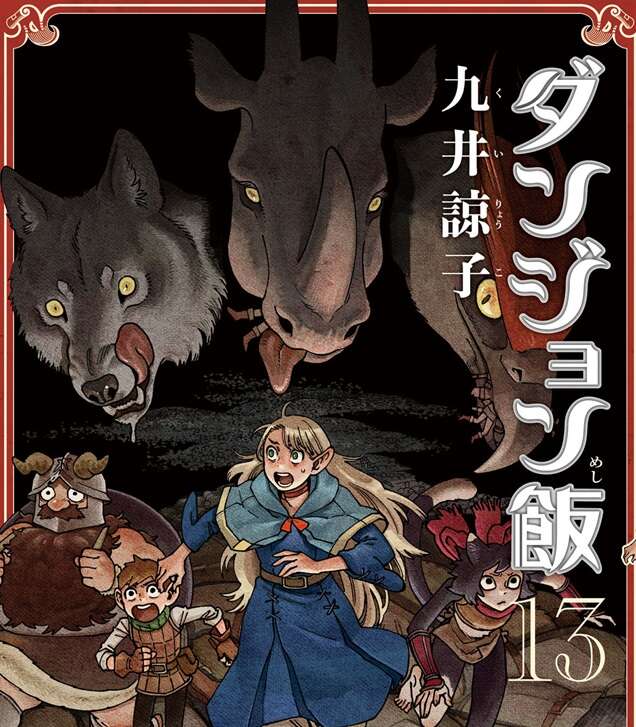13巻の表紙は魔物になったライオスと、それから逃げるマルシル達です。