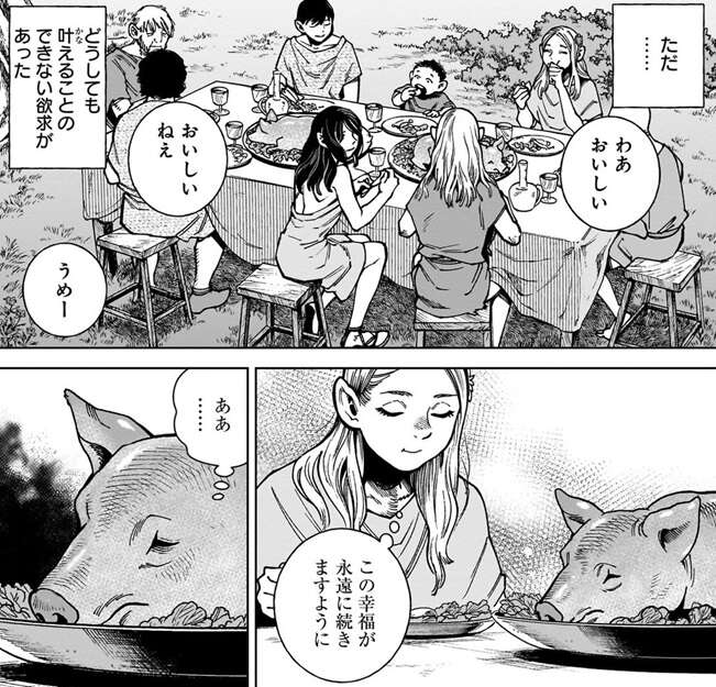 翼獅子に飲み込まれたライオス一行は、翼獅子の記憶の世界で翼獅子と対峙します。ライオスは自分が迷宮の主となり、翼獅子が人間の欲望を叶えられずにはいられないという性質を利用し、悪魔が人間に手出ししない平和な世界を翼獅子に望んで、平和な世界を実現しようとライオスは考えていました。しかしマルシル達は、そんな作戦で上手くいくか?と、懐疑的です。
