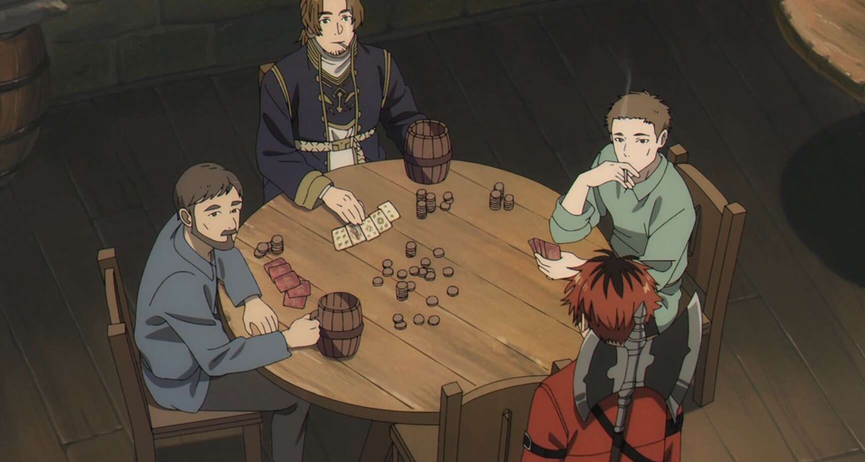 フェルンとシュタルクはザインを勧誘することに賛成ですが、フリーレンはザインを勧誘することに一人悩みます。何が不満なのかフェルンが聞くと、同族嫌悪…かな、とはっきりしない答えをフリーレンは口にします。シュタルクは一人でザインを仲間に勧誘しに行きますが、ザインは僧侶なのに酒場でたばこやポーカーを楽しんでいました。シュタルクはザインとポーカー勝負をすることになり、勝てばザインは仲間になると言います。