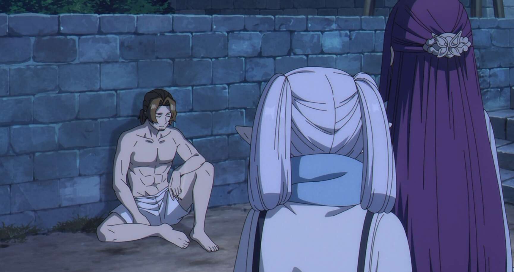 暫くして、フリーレンとフェルンがシュタルクを探しに行くと、シュタルクは身包みを剥がされていました。ザインは冷静な顔で、大人ってのは汚いもんなんだぜ、と言いますが、ザイン自身も身包みを剥がされています。どうやら、村長の一人勝ちだったようです。ザインは改めて、フリーレンに仲間探しなら他をあたるように言いますが、フリーレンはヒンメルの言葉を思い出し、意地でもザインを仲間に誘う事にします。