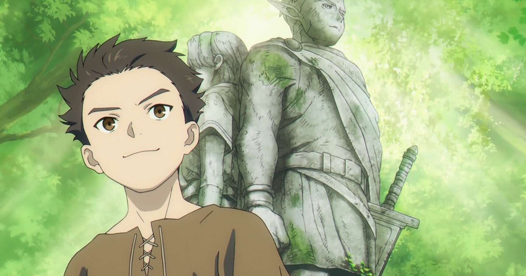 英雄の像のうち、戦士の方の像は第11話で出会ったエルフのクラフトでした。クラフトがどんな形で世界を救ったのかは不明ですが、大昔は英雄と呼ばれていたようです。英雄の像を見たザインは、ハイターと一緒にこれと同じ英雄の像を見た時の事を思い出します。この英雄の像を見た時に、親友は戦士ゴリラと名乗ると言い出し、ザインはハイターから僧侶アゴヒゲと名付けられました。