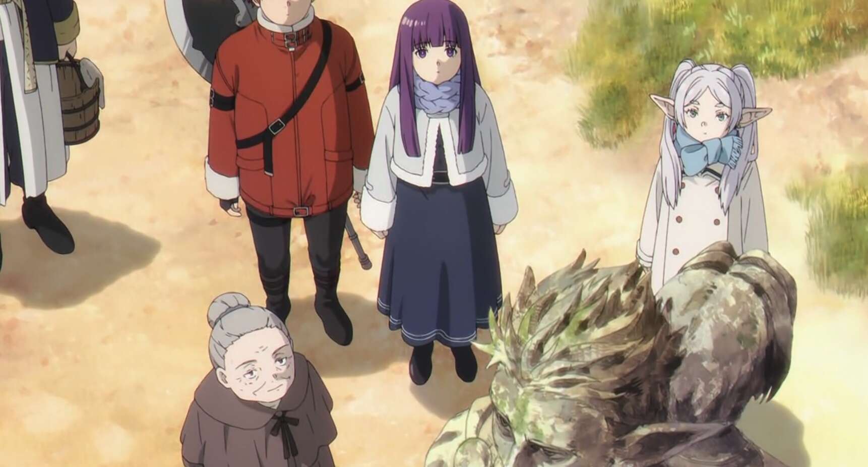大峡谷を越えて一週間も歩けば、魔法都市オイサーストに到着という所までたどり着き、ザインは一度集落に寄りたいと言います。立ち寄った集落で戦士ゴリラの事を聞くと、ゴリラは頑固婆さんと仲が良かったとの情報を入手します。その頑固婆さんに話を聞きに行くと、依頼をいくつかこなしてもおうと言われ、フリーレン一行は依頼をいくつもこなすことになります。