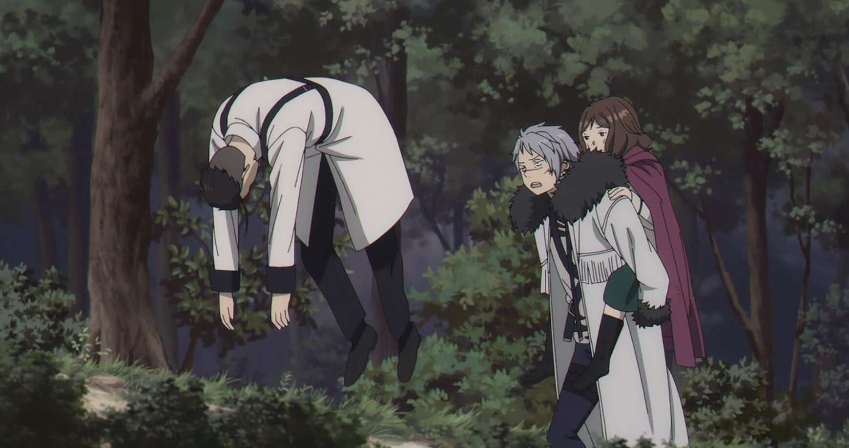 森の中でヴィアベルは倒れているエーレを見つけます。エールは殺されておらず気を失っているだけで、ヴィアベルは嘘をついたフェルンに悪態をつきます。ヴィアベルはエーレをおんぶして、さらに倒れているシャルフも回収します。しかし戦闘不能のメンバーが2名となり、ヴィアベルは第一次試験の不合格は確定だと諦めてしまいます。