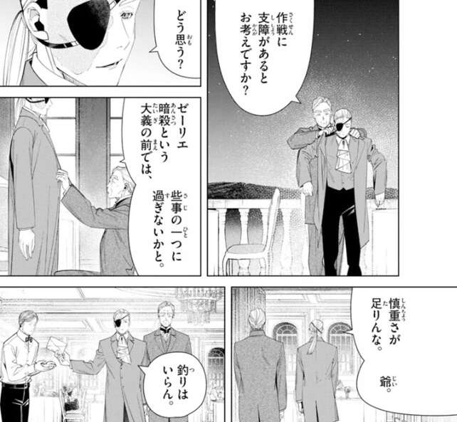 付き人はフリーレンの事を、ゼーリエ暗殺という大義の前では、些事の一つに過ぎない、と言い、作戦には支障がないと言います。しかし、慎重さが足りんな、爺、と影なる戦士と思われる男は言うと、どうせ歴史に残らぬ偉業、美しさなど必要ない、大戦士の亡霊らしく、誇りも名誉もかなぐり捨てて勝利を奪い取るまでのことよ、と影の戦い方を付き人に教えます。