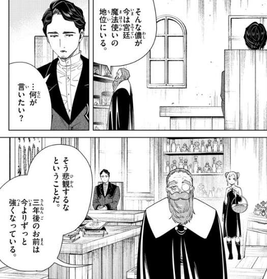カンネは、…こりゃ重傷だね、とつぶやいていると、そこにフリーレンが袋を持って、二人の元にやって来ます。続いて、デンケンとラオフェンがリヒターの店を訪れています。デンケンはリヒターに、今回は運が悪かった、とリヒターを気遣いますが、負けは負けだ、俺の実力が足りなかった、とリヒターは冷静に言います。