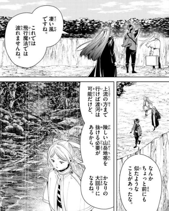 勇者ヒンメルの死から30年後、北部高原のトーア大渓谷はこの大陸で一番深い渓谷で、三千メートルの大絶壁です。ここを飛行魔法で渡るのは困難で、遠回りして渡るしかないようです。