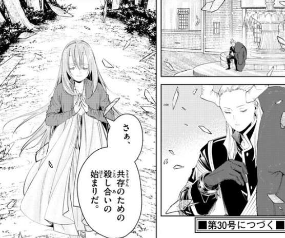 大結界は完全に破壊され、マハトは自由に動けるようになります。そしてソリテールは、さぁ、共存のための殺し合いの始まりだ、とつぶやきます。