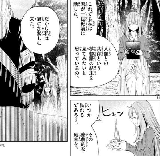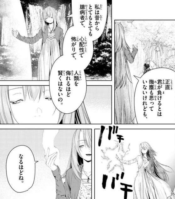 ソリテールは正直、マハトがフリーレンに負けるとは微塵も思っていませんが、それでも自分は昔からとてもとても臆病者で、心配性で怖がりで、人類を侮れるほど賢くないの、と言いマハトに加勢しようとします。