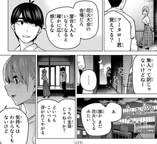 【ネタバレ】五等分の花嫁 102話 『最後の祭りが一花の場合②』のネタバレ、感想