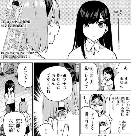 【ネタバレ】五等分の花嫁 87話 『私と姉妹①』のネタバレ、感想