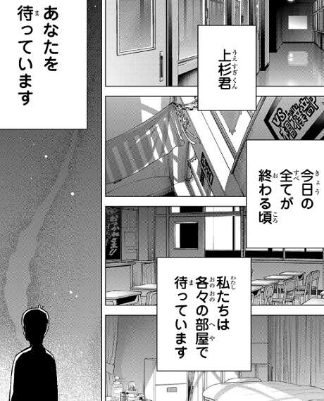 五つ子たち全員が学園祭の全てが終わる頃各々の部屋で、風太郎を待ちます。そして夜空を見上げる風太郎、運命の決断が迫ります。