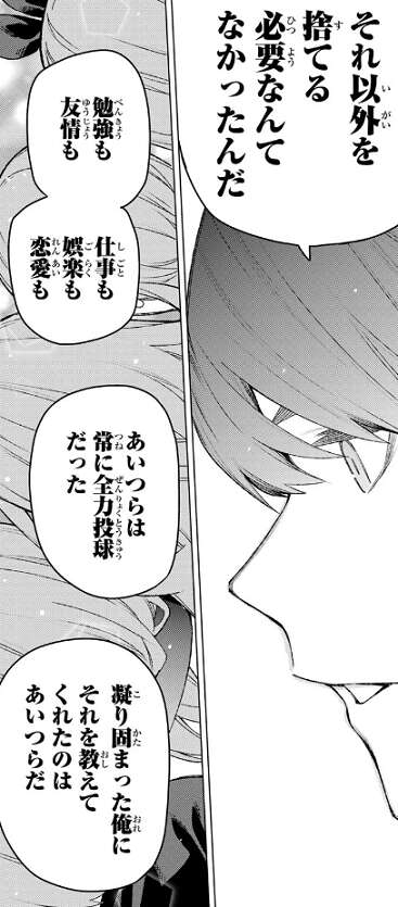 風太郎が無言のままでいると、前田が突然今から告白にしに行くと叫び、風太郎にも覚悟を決めるように迫ります。しかし、武田から学生の本分は学業にあると、告白を否定するようなセリフが出てきます。