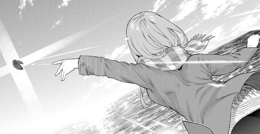 四葉と帰りながら、あえて四葉本人には言わないと思いつつ、今の学校に来る選択をしたから風太郎に出会えた、少なくとも私はそれを不幸だと思わない、と三玖は思います。そして風太郎に出会った時からの思い出を、三玖は振り返ります。