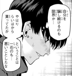 五月は風太郎が男として信用に足るのか、見極めないといけないと言います。ここで一花が「フータロー君はお父さんとは違うよ」と言っていますが、五月とお父さんの間で何かあった事を暗に示しています。