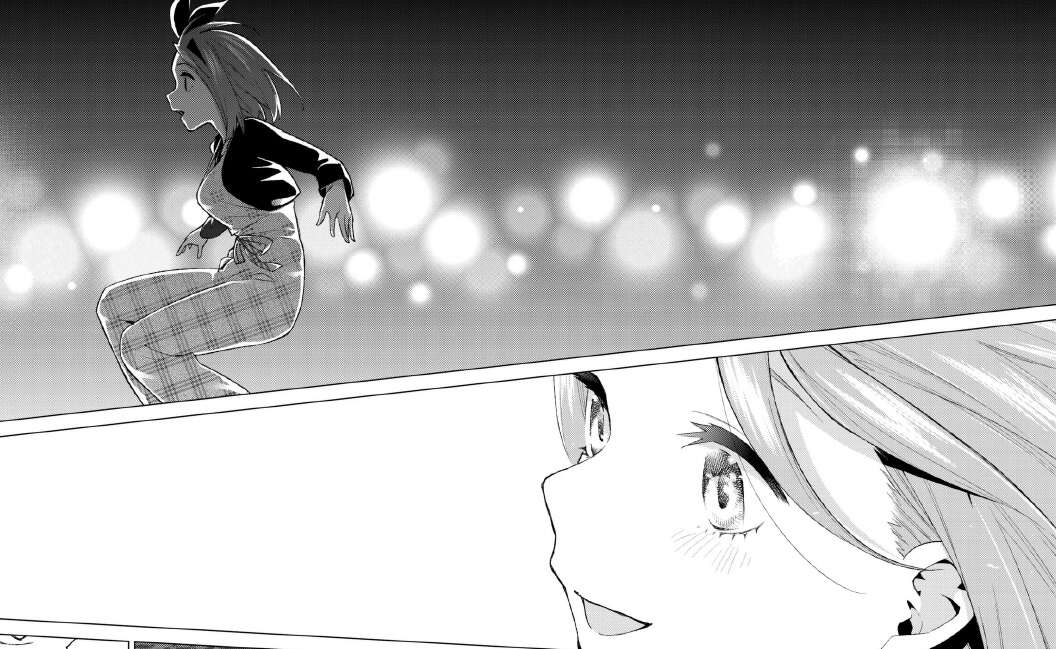 前回からの四葉とのデート回、終了ですが目をつむっていたとはいえ、風太郎の前で着替えるとは四葉も意外と大胆です。公園でも風太郎といい感じになっていました。四葉の個別回は貴重なので、すごく楽しめました。