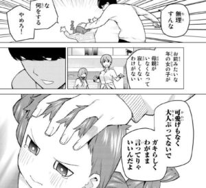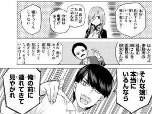 さらに一花も事務所の社長の娘の面倒を見る約束があり、自習に付き合えないと言います。疑う風太郎は事務所の社長の娘を実際に連れて来いと言います。