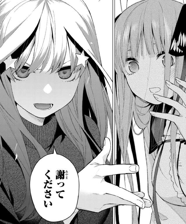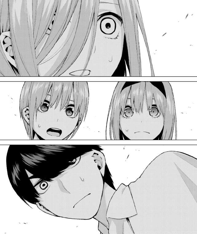 結局二乃と三玖は風太郎から褒められた事に対して、あからさま過ぎて2人からは気持ち悪がれます。