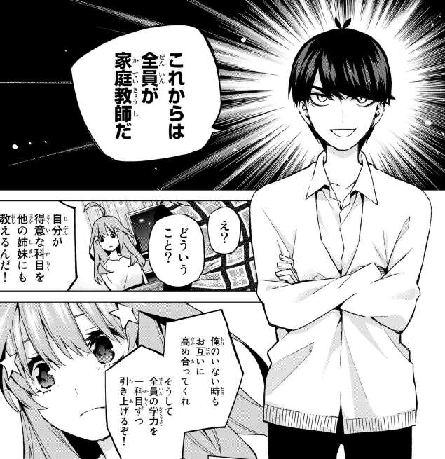 そして2月、先週の遊園地での四葉とのやり取りの通り、皆が家庭教師となり自分が得意な科目を他の姉妹にも教えるような体制にします。こうして風太郎だけに負担がかからない体制が築きあげられました。