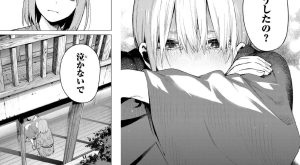二乃から風太郎に告白すると言われ動転してしまい、つい泣いてしまった一花ですが、四葉が一花に声をかけます。