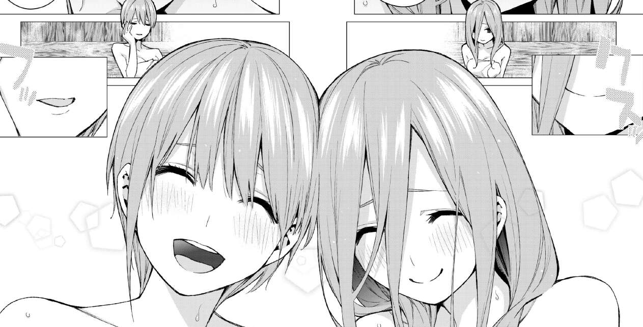 場面変わって、二乃と五月は別の場所で温泉につかっています。二乃は「まさか三玖だけじゃないなんて」と言っているので、一花の気持ちにも気づいたのでしょうか。そして二乃はさらに五月に内緒にしていることはないか、念を押します。五月は「あったとしても言えないから隠し事なんですよ」と二乃の質問をごまかして返事します。