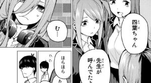 次回、クラス内で四葉と風太郎が付き合っていると噂になります。