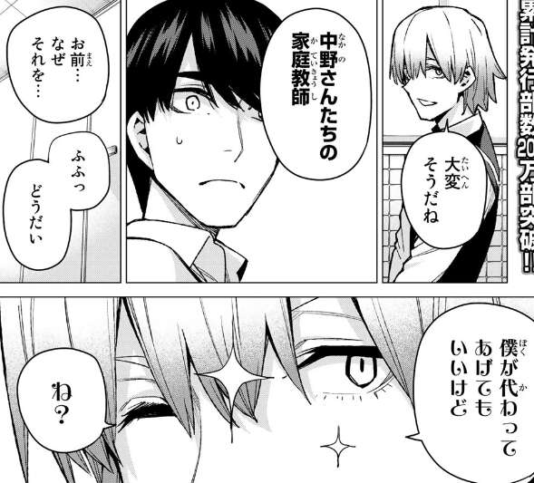 そして、何故か武田が中野さんたちの家庭教師を大変そうだから変わってあげてもいいと言い出してきます。なにか考えがあって言ってきているんでしょうか。