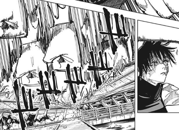 蘭太の叫びを聞いて甚壱は真希への攻撃を決心し、術式で空中に強大な拳をいくつも出現させます。その強大な拳を真希に対して振り下ろし、建物ごと真希を破壊します。