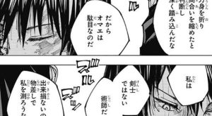 躯倶留隊に取り囲まれた真希ですが、取り囲まれた事は気にせず、どうしたかったんだろうな、と自問自答します。そして、なんで一緒に落ちぶれてくれなかったの?という、真依の言葉を思い出し、きっとそれが私達の正解だったんだろうな、と真希は自分に言い聞かせます。そして真依に心の中で謝ると、約束だよ、全部壊して、という真依との約束を思い浮かべます。その後真希は目を見開くと、襲い掛かってくる躯倶留隊のメンバーを攻撃します。