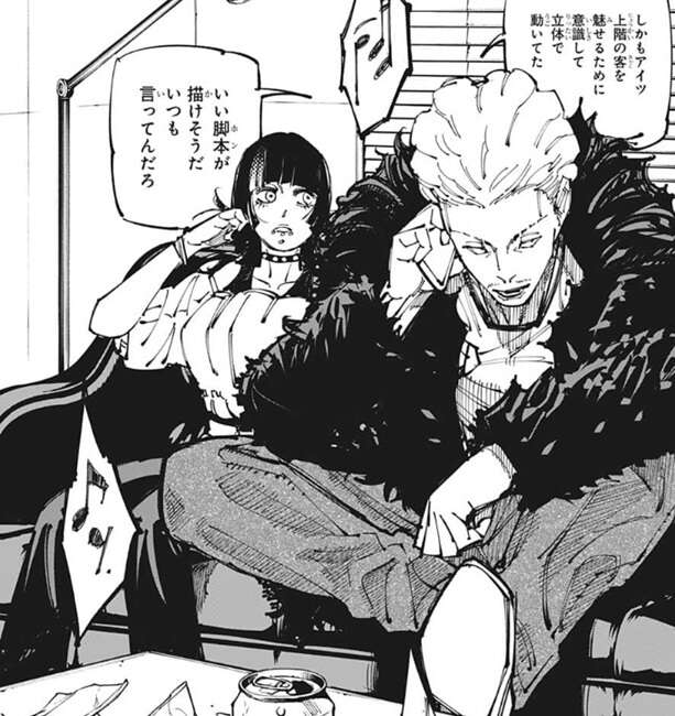 虎杖が上のフロアの客を魅せる為に、意識して立体で動いていたのを秤は気に入ったようで、いい脚本(ホン)が描けそうだ、と見張りの男に言います。そして、いつも言ってんだろ、熱は熱いうちに……だ、と秤はつぶやきます。