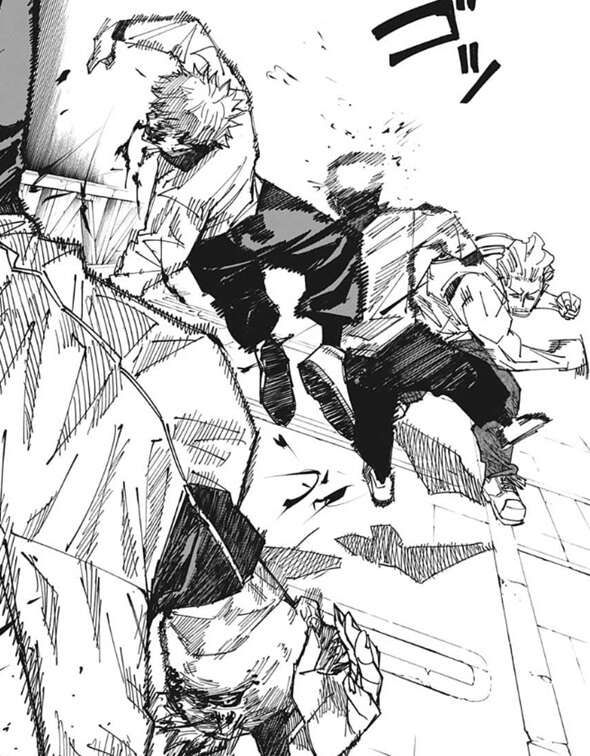 秤のパンチが再び、虎杖をモロにとらえて虎杖は吹っ飛ばされます。