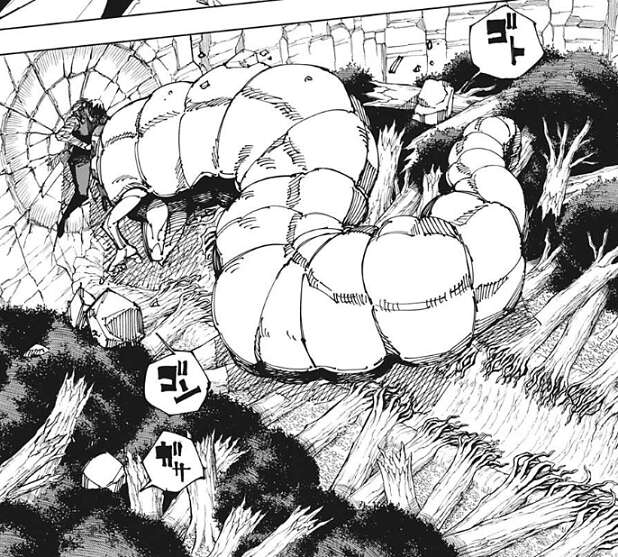 壁に突き飛ばされた真希は、速いだけじゃない、妙な感じがする呪霊に何かおかしいと思います。呪霊はさらに芋虫のような体から生えている腕で真希を殴ろうとしますが、この攻撃はかわします。