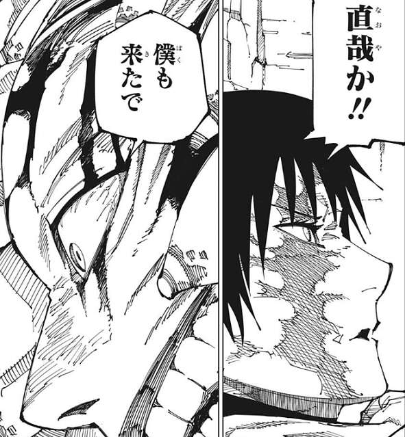 その顔を見て真希は、直哉か!!と、叫びます。呪霊となった直哉は、僕も来たで、こっち側、とさらに真希に話しかけます。