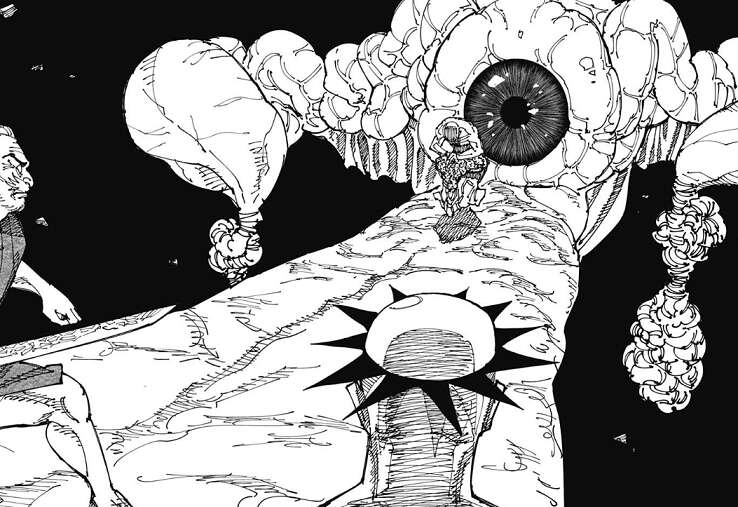 直哉は一撃で決められなかった真希に襲い掛かろうとし、人間の姿から呪霊の姿へと変化し始めます。領域展開の効果でもう真希は身動きが取れないと思い、直哉は勝利を確信したのか、真希を馬鹿にしたように煽ります。