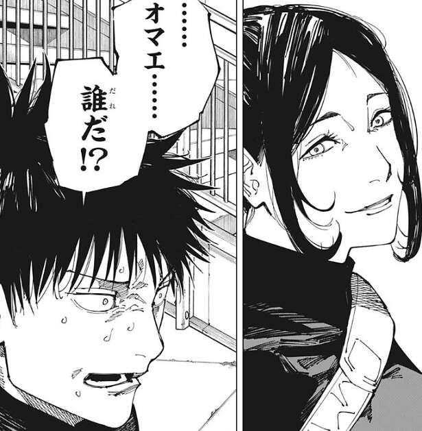 津美紀は笑顔の表情ですが、その様子を見て伏黒は、……オマエ……誰だ!?と、驚きながら津美紀に言い放ちます。