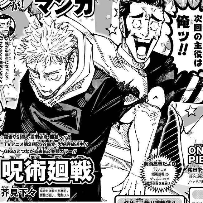 次回は羂索VS超人・髙羽史彦開幕&TVアニメ第2期「渋谷事変」大好評放送中、ということで表紙&巻頭カラーです。次回の主役は俺ッ!!と、髙羽が主張しています。