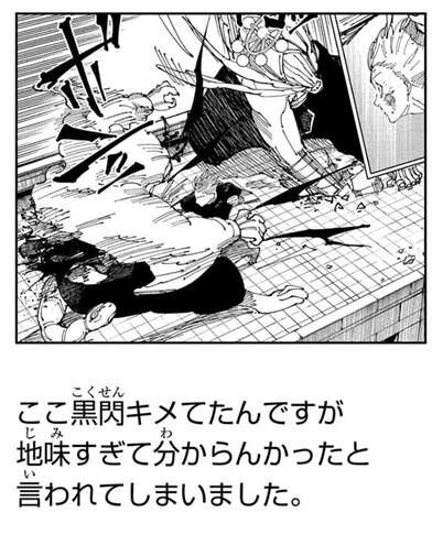 週刊連載時は五条がどこで二度目の黒閃を決めたか、よく分かっていませんでしたが、第234話のこのコマで顎吐に黒閃を決めていたようです。コミックス26巻のおまけで、芥見下々先生が解説しています。