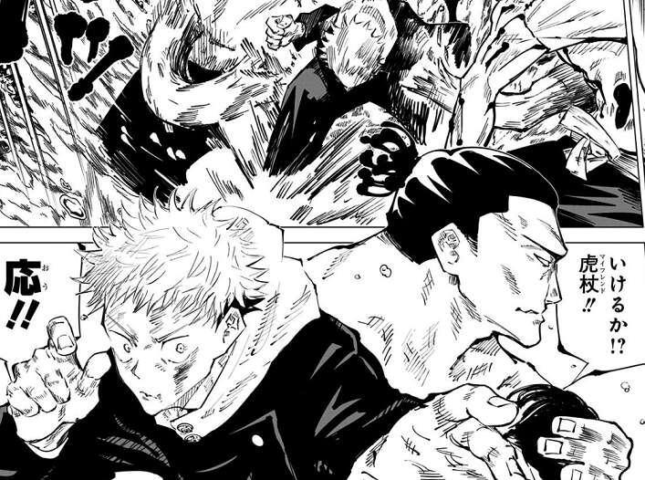 黒閃をキメるまで手を出さない、と東堂に言われ、虎杖は花御を相手に一人で戦いますが、“怒り”によって呪力が乱れ、黒閃をキメることが出来ません。しかし東堂にその事を指摘され、さらにビンタで気合を入れられたことで、虎杖は花御相手に実戦の中で黒閃をキメることに成功します。