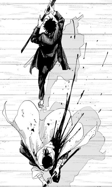次の瞬間、漆羽は座村に斬られて大量に出血します。