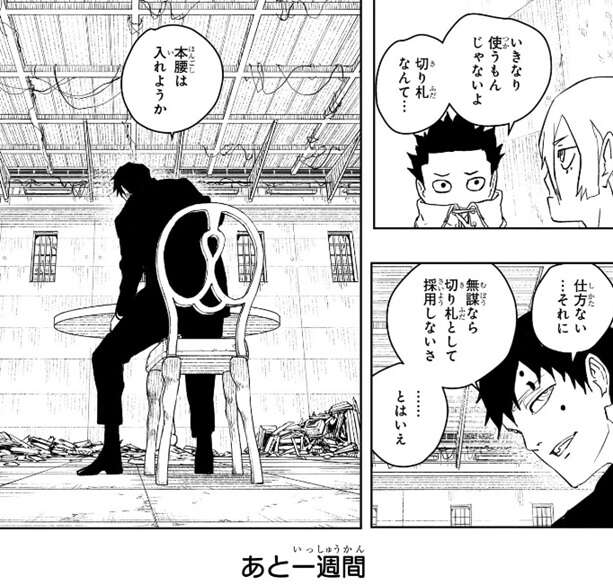 連絡しろと言い姿を消す座村。いきなり使うもんじゃないよ、切り札なんて…、と毘灼のメンバー?が昼彦をいさめますが、毘灼の統領・幽は仕方ないと問題にしません。あと一週間で全て終わらせると座村は考えているようですが、上手くいくでしょうか?