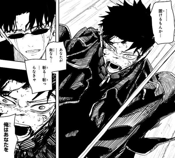 混乱したチヒロは座村に、毘灼に妖刀を握らせていい理由を問い質しますが、座村はそれに答えません。そして、淵天を見てチヒロに淵天を置くように言いますが、チヒロは淵天を離さず、座村が敵なら斬らないと、と言います。
