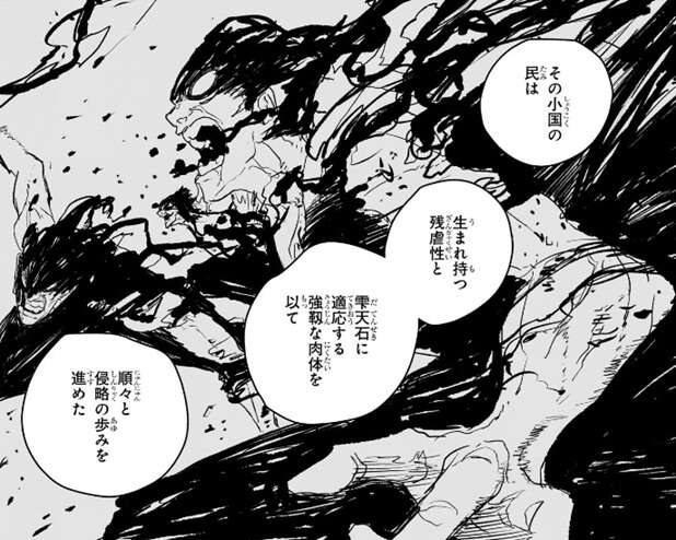 また、小国の民の生まれ持つ残虐性に関しても人の性が一様であるはずもなく、小国の民は雫天石に適応する特異体質を有するだけの人間だと幽は言い、侵略を率いた小国の王家が失脚し彼らは“降伏”を選んだそうです。しかし、条約が締結され一度和平が成立しますが、戦を経て無数の屍を踏んだ剣聖は乱心してしまい、戦いを継続、小国の民を殲滅しようとします。