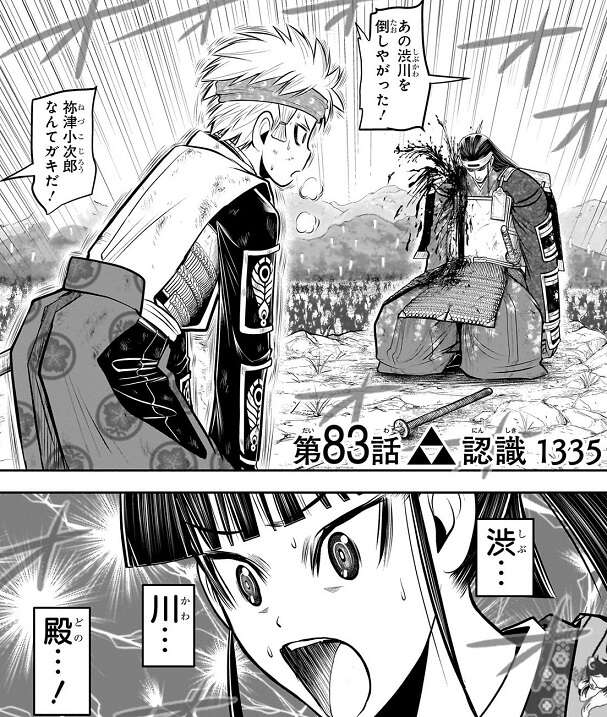 弧次郎は渋川を一騎打ちで見事に倒し、これで庇番衆・渋川、岩松、石塔の三人を討ち取ることに成功します。さらに北条軍は足利軍の背後を襲う事で女影原の戦いを有利に進め、北条軍はそのまま戦いに勝利します。