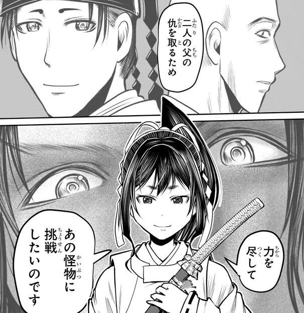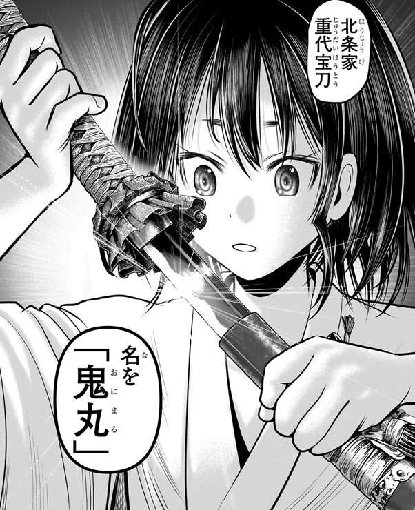 時行は頼重を戦場から救出しますが、戦場で受けた矢傷は深く鎌倉の勝長寿院で命を落としてしまいます。頼重は最後に尊氏と戦う為のいくつかの武器を、逃若党に用意します。雫に頼重が持っていた予知の力を継承させ、雫はあやふやですが未来が見えるようになります。時行には北条家代々の加護が宿った、北条家重代宝刀「鬼丸」を授けます。