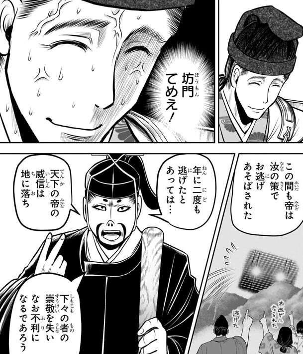尊氏は乱には勝ちましたが、時行が味方の足利軍からも「中先代」というあだ名で称賛されていると知り複雑な感情を抱きます。一方、時行は中先代の乱で奪取した鎌倉から伊豆へと逃げますが、時行はいつの日か再び尊氏に挑戦しようと強く胸に刻みます。