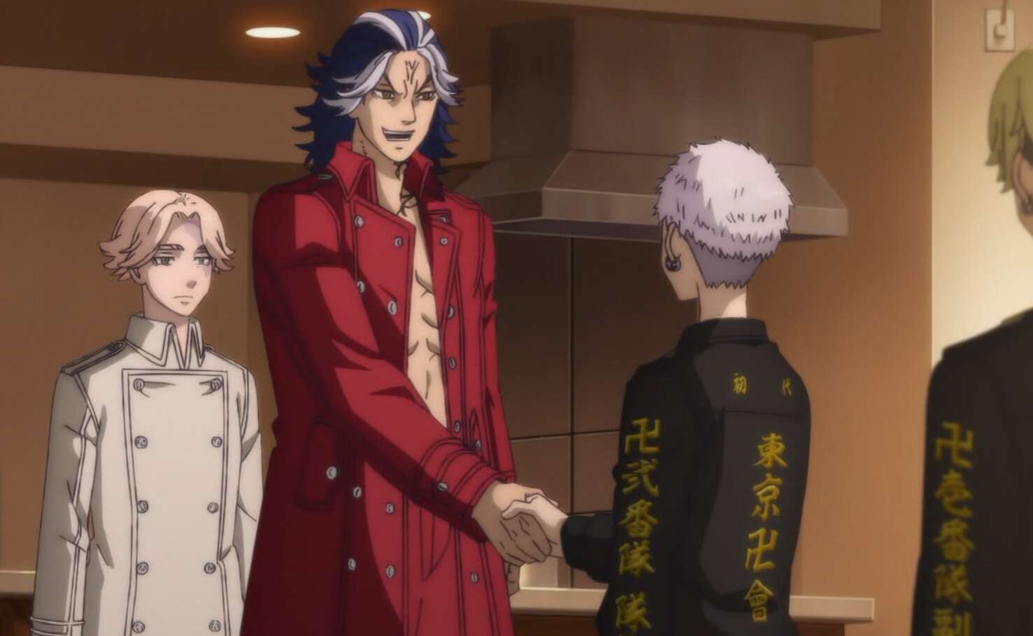 幼い頃から八戒の事をよく知る三ツ谷は、副隊長の八戒がやめることを認めず、大寿に合わせるように八戒に言います。八戒は三ツ谷が大寿に会うのに反対でしたが、三ツ谷に言われしぶしぶ家に案内します。さらに、八戒の東卍離脱を防ぎたい武道と千冬は、三ツ谷達に同行して大寿との話し合いを見守ろうとします。